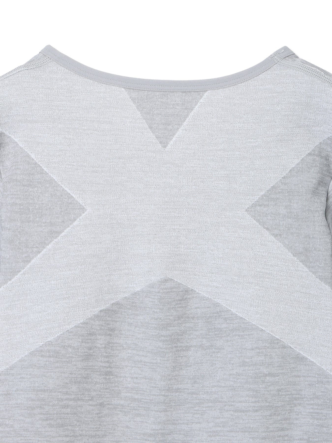 肩甲骨を中央へ引き寄せる: 背面に配置した独自の強力なクロス編地が、外側に広がりがちな肩甲骨を中央へと引き寄せるようにホールド。胸がスッと広がり、背筋の通った力強いシルエットを維持します。