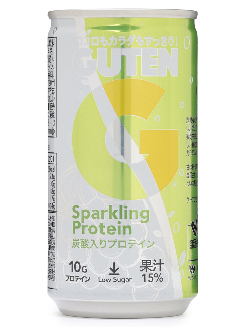 イタリア製造のシャルドネ果汁を贅沢に使用し、ぶどう酢でさらに爽快なアクセントを加えた、15%果汁入りの炭酸プロテイン飲料です。